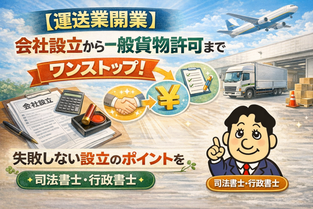 会社設立、一般貨物許可申請などをサポートしています。