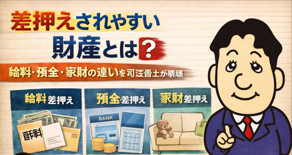 関連記事:「差押えされやすい財産とは?給料・預金・家財の違いを司法書士が解説」